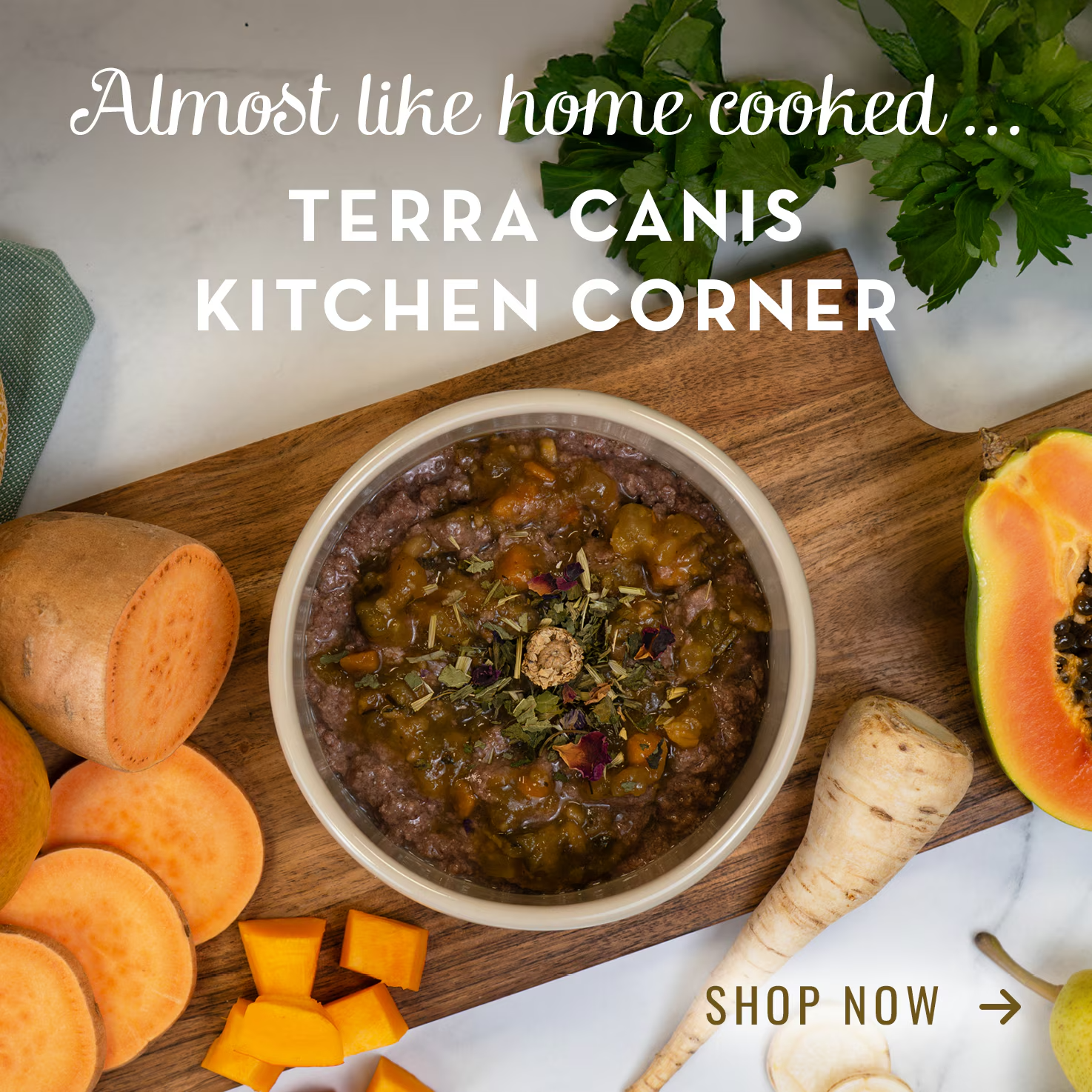 Kompromisslose Qualität für Hunde - dafür steht Terra Canis seit 2005. Mit der erstmaligen Herstellung von Hundenahrung in einem echten Lebensmittelbetrieb, der Münchener Metzgerei Schäbitz, hat Terra Canis völlig neue Qualitätsmaßstäbe im Bereich Tiernahrung gesetzt.  Mittlerweile werden die Menüs in unserer neuen, eigenen Produktion vor den Toren Münchens produziert. Mehr erfahren....