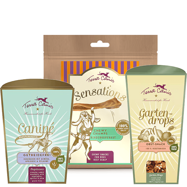 Hunde lassen sich nicht über einen Kamm scheren, jedes Tier ist anders. So individuell wie der Charakter sind auch die Ansprüche an die Ernährung. Ein gutes Hundefutter entspricht der Rasse, dem Alter und Gesundheitszustand der Tiere. Im Sortiment von Terra Canis finden Sie dementsprechend vom Welpenfutter, Adult-Futter und Seniorfutter über hypoallergenes und getreidefreies Hundefutter bei Futtermittelunverträglichkeit bis hin zum Hundefutter light für übergewichtige Vierbeiner maßgeschneiderte Futterlinien. Hinzu kommen Gemüse-Obst-Kräuter-Mischungen für eine purinarme Ernährung, gebackenes oder luftgetrocknetes, nicht kaltgepresstes Trockenfutter als Alleinfutter, gesunde Snacks sowie Ergänzungsfutter wie Öle, Pasten und Superfoods, mit denen Sie problemlos einen für Ihr Tier optimalen Ernährungsplan zusammenstellen können. Nutzen Sie unser Know-how und die langjährigen Erfahrungen bei der Entwicklung des besten Futters.