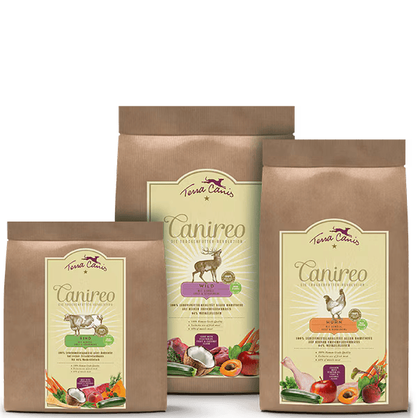 Bestellen Sie das passende Futter für Ihren Vierbeiner bequem in unserem Onlineshop. Zahlreiche verschiedene Sorten bringen Abwechslung in den Napf und schmecken einfach tierisch gut! Sind Sie nicht sicher, ob Ihr Hund unsere Tiernahrung mag, empfehlen wir unsere praktischen Futterpakete zum Kennenlernen und Ausprobieren. Und wenn die Lieblingssorte gefunden ist, vermeiden Sie mit unserem Futterabo unfreiwillige Engpässe. Die beste Ernährung für Ihren Hund kann also ganz einfach sein: Mit Terra Canis – Natur, die durch den Magen geht! :)